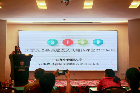 本次研討會共設兩個分會場,我校教師在第二分會場就翻轉課堂為主題作了相關報告,向與會教師介紹了我校《新標準大學英語:綜合教程》慕課的建設及其翻轉課堂教學應用情況。具體圍繞課程建設、小規模翻轉教學實驗階段、大規模運行階段三個板塊探討了建課的目的及過程,并運用問卷數據,結合實際情況分析了翻轉課堂面臨的挑戰和問題。會場反響熱烈,其他院校教師對我校的翻轉課堂展現了濃厚的興趣,與我校教師展開了激烈討論,均表示四川外國語大學基于MOOC的翻轉課堂教學是一種能改善學生語言能力和學習能力的有效方法。