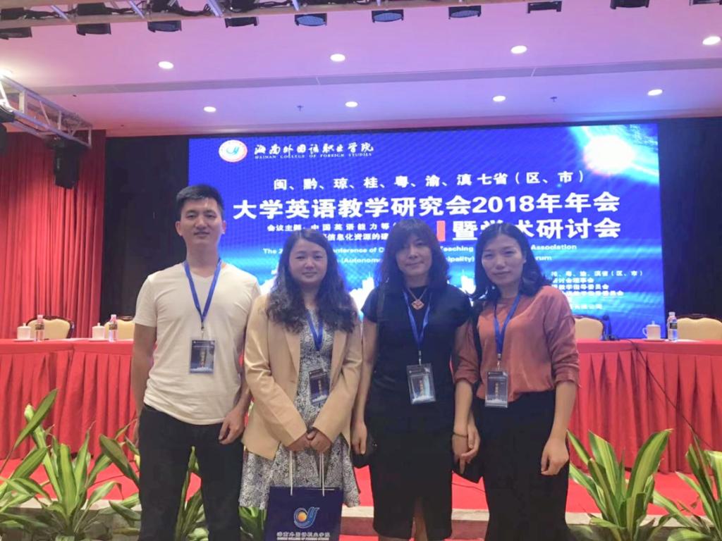 2018年11月2日至4日,閩、黔、瓊、貴、粵、渝、滇七省(區、市)大學英語教學研究會2018年年會暨學術研討會在海南文昌舉行。我校大學外語教學部那瑛、何巧玲、刁陽碧、洪毅四位教師參會并作小組發言。