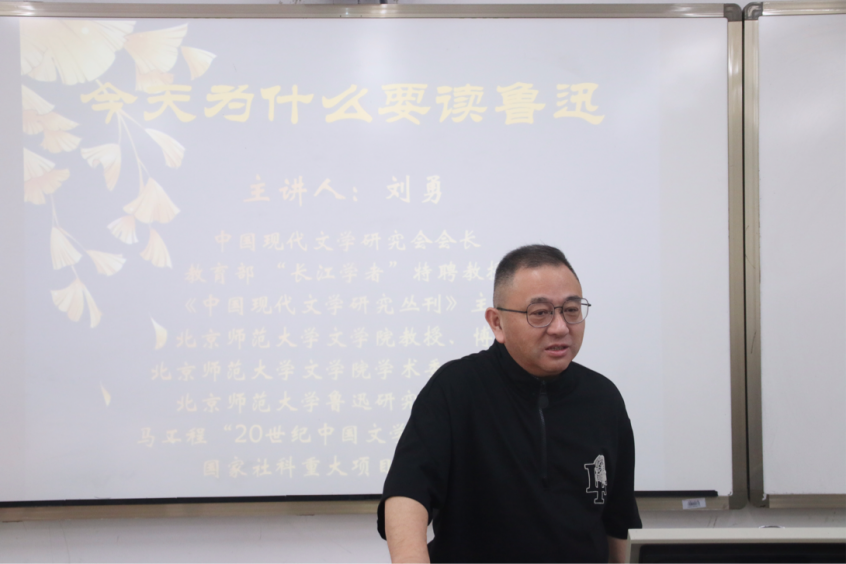 講座伊始,劉勇教授開門見山,拋出問題“今天為什么要紀念五四?”——因為“五四”是我們民族繞不過去的話題,并從“五四”的啟蒙精神——立人思想、“五四”形成的文學經(jīng)典和對魯迅那代人的思考三個角度對這個問題進行闡釋。其次,劉教授談及五四新文學的幾個核心問題:第一,五四新文學并不是自然生成的、而是人為的選擇;第二,棄醫(yī)從文不是魯迅一個人的選擇,而是整整一代有識之士的共同選擇;第三,天降大任、走向世界,是五四一代人的普遍行為。