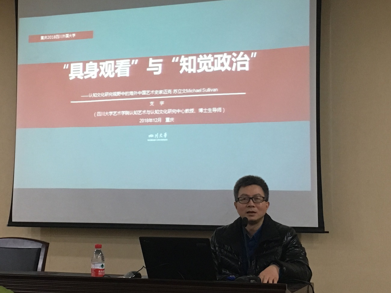 2018年12月27日下午三點,四川大學(xué)藝術(shù)學(xué)院支宇教授應(yīng)邀在我校西區(qū)圖書館208會議室做了一場題為“‘具身觀看’與‘知覺政治’—認(rèn)知文化研究視野中海外中國藝術(shù)史家的邁克?蘇立文(Michael Sullivan)”的講座。講座由我校博士生導(dǎo)師熊沐清教授主持,并有來自各院系的師生們參加,現(xiàn)場氣氛熱烈。