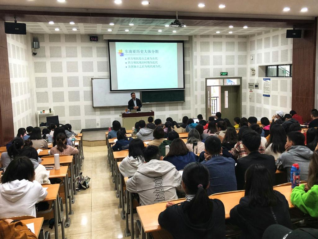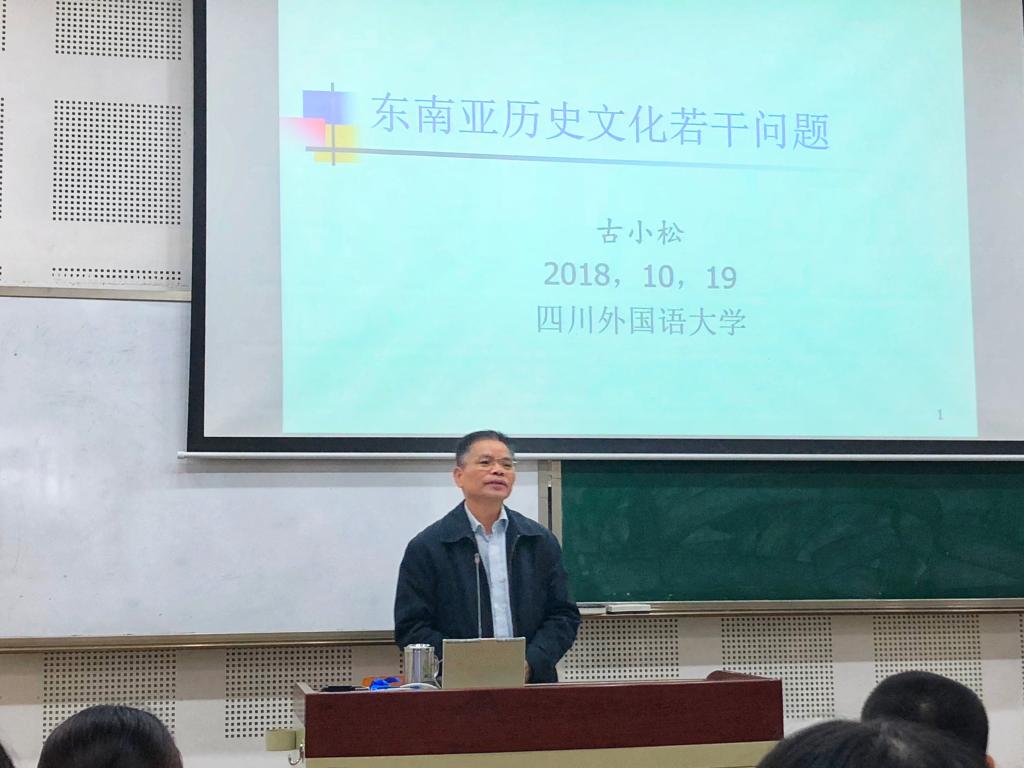 10月19日下午,古小松博士在西區(qū)教學(xué)樓階梯教室B2-1開展了題為《東南亞歷史文化若干問題》的專題講座,我校東方語學(xué)院全體越南語、泰語專業(yè)師生參加。講座之初,古老師聯(lián)系近現(xiàn)代時事要聞,強(qiáng)調(diào)當(dāng)今世界東南亞的重要戰(zhàn)略地位。接著,他概述東南亞歷史發(fā)展的整體脈絡(luò),并以此指出東南亞國家具有局部同一性,即經(jīng)濟(jì)和軍事上的同一性。隨后,古老師回顧了古代東南亞大陸的四大戰(zhàn)爭:柬占之戰(zhàn),泰柬之戰(zhàn),緬泰之戰(zhàn),越占之戰(zhàn),并以高棉人創(chuàng)造的巨石文化展示了古代東南亞的燦爛文明。鑒于聽眾為多為越泰語言專業(yè)的師生,古老師詳細(xì)介紹越南和泰國的古今歷史,通過講述兩個國家重要的發(fā)展節(jié)點(diǎn)和與漢關(guān)系的變化,論述了兩國與中國有著追本溯源的聯(lián)系。古老師最后從地理位置、人文關(guān)系和歷史關(guān)系的變化總結(jié)了中國與東南亞的關(guān)系,表達(dá)對越泰專業(yè)同學(xué)未來就業(yè)的看好與期許。