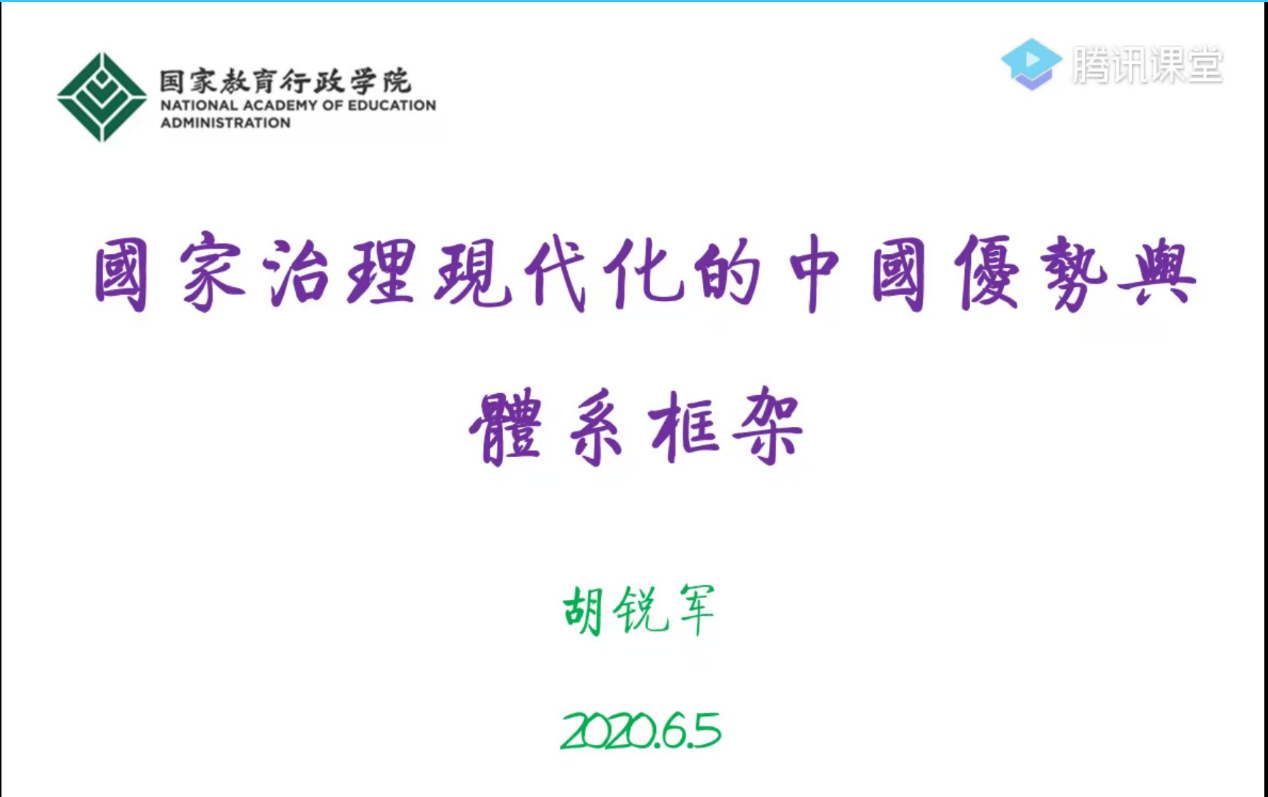 6月5日,思政教育“進課堂”系列講座之 “國家治理現代化的中國優勢和體系框架”順利開展。本次講座主講嘉賓來自教育部機關黨校工作辦公室主任胡銳軍。胡主任主要從事政治學理論、傳統政治文化、當代中國政府與政治、教育政治學研究,編撰出版多部著作,在《政治學研究》《孔子研究》等刊物發表論文80余篇。