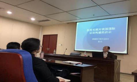 2020年10月23日下午,應四川外國語大學翻譯學院和當代國際話語體系研究院的邀請,中國外文局原副局長王剛毅先生應邀在圖書館二樓會議室為我校師生做了題為“抗疫實踐對我國構建國際話語的啟示”的學術講座。本場講座由我校翻譯學院院長、博士生導師胡安江教授主持。眾多本校和外校的老師學子慕名而來,座無虛席。