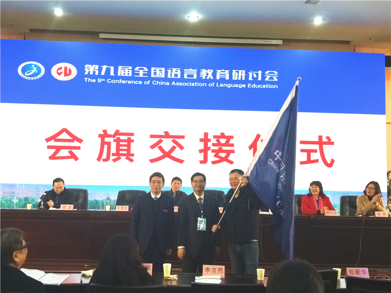 隨后,舉行大會閉幕式,閉幕式由四川外國語大學(xué)姜孟教授主持。首先,晏小琴、劉輔蘭、王明樹、曾劍平、邢富坤五位教授依次作了分會場總結(jié)發(fā)言。他們表示,此次研討會人才薈萃,研究報告內(nèi)容豐富,話題前沿,對我國語言教育具有高度的啟發(fā)性和引導(dǎo)性。接著,學(xué)會副會長倪傳斌教授代表學(xué)會致閉幕辭。最后,學(xué)會會長李克勇教授宣讀理事會決議并向下屆會議承辦單位電子科技大學(xué)代表授會旗;下屆會議承辦單位代表發(fā)表了熱情洋溢的講話,并向全體與會代表發(fā)出了明年相聚成都的熱誠邀請。