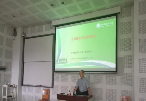 講座開始之前,胡安江教授對張法連教授的到來表示了熱烈的歡迎和由衷的感謝,并向大家介紹了張法連教授在法律翻譯學術研究與實踐中取得的卓著成就。