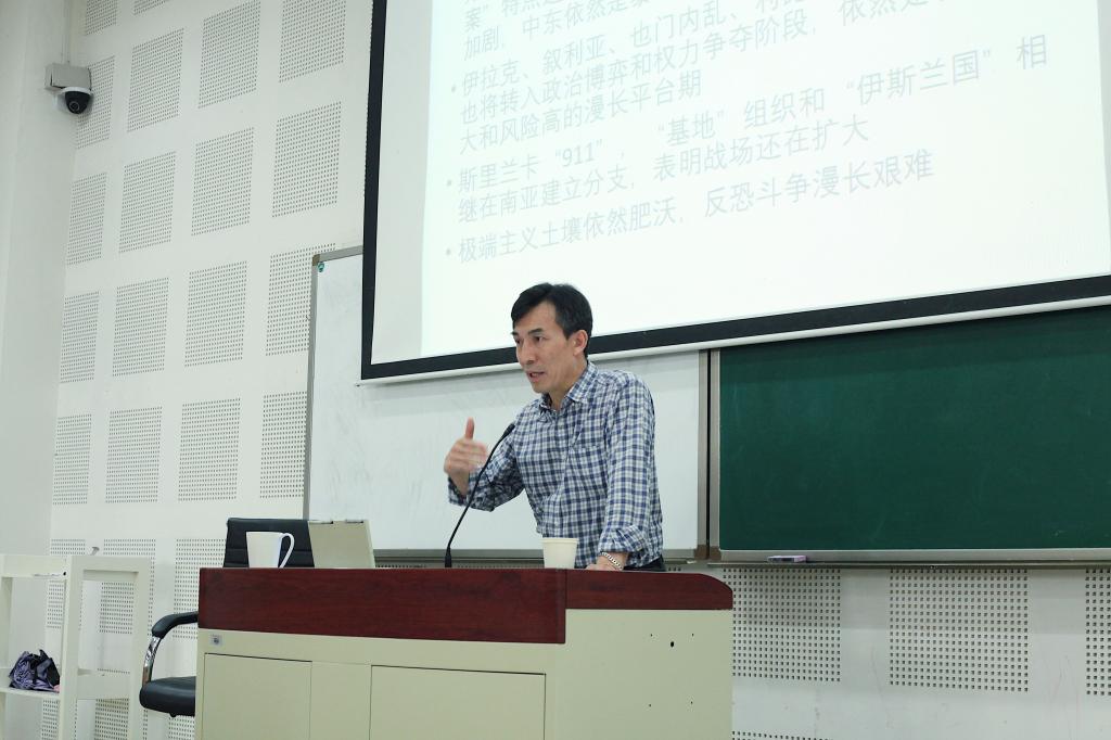 所謂“于實踐中出真知”,馬曉霖教授利用自己豐富的戰地經歷和幽默風趣的談吐為我校師生深入淺出地講述了中東地區極端主義的緣起與發展,及其在世界范圍內造成的惡劣影響,同時,他還就恐怖主義的生存現狀進行了現實分析,并提出了與之相對的解決方法。長期以來,恐怖主義成為威脅人類生活安全的一大災害,形成了對全球安全的嚴峻挑戰,世界各國堅決反對并嚴厲打擊各種形式的恐怖主義。要實現反恐斗爭的最終勝利,必須要有對恐怖主義的全面了解和認識。馬教授的此次講座,切實地提高和深化了同學們對于恐怖主義的認知,并進一步強調了世界各國通力合作反對一切形式的恐怖主義的必要性。