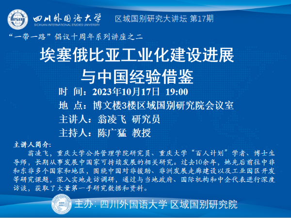 主題?區域國別研究大講壇第17期 埃塞俄比亞工業化建設進展與中國經驗借鑒